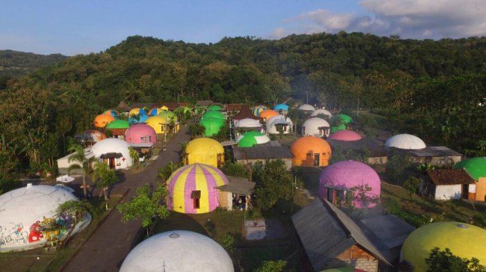 Untuk menarik wisatawan, rumah dome yang awalnya hanya bercat putih saja. Warga sekitar berinisiatif untuk mengecat dan menggambari rumah dome mereka sehingga terlihat lebih berwarna dan ceria. Saat hari libur, biasanya aka nada badut-badut teletubbies yang menyambut para wisatawan. Selain itu disini juga terdapat kereta kelinci yang akan mengajak wisatawan mengelilingi Desa Teletubbies.