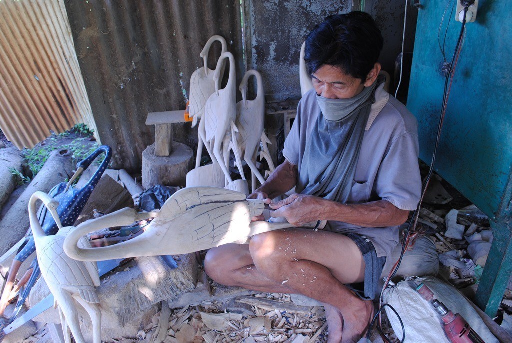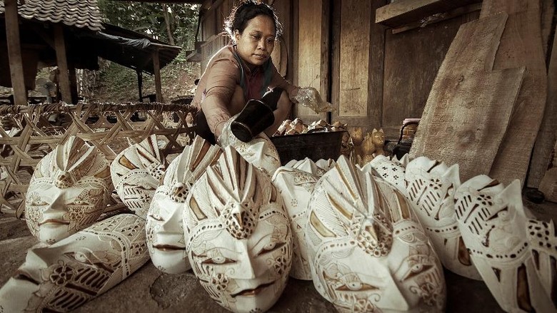 Bahan baku untuk membuat topeng adalah kayu Sengon dan Kayu Pule. Keduanya dipilih tentu bukan karena tanpa alasan. Kayu Sengon memiliki karakteristik berserat cukup kasar namun bisa awet dalam waktu yang lama. Sedangkan kayu Pule cenderung lebih empuk, seratnya halus, warnanya putih bersih sehingga mudah untuk dibentuk. Namun kayu sengon membutuhkan waktu yang kama untuk bertumbuh. Dengan masing-masing karakteristik tersebut keduanya disatukan untuk menghasilkan hasil karya kerajinan batik kayu yang indah dan bernilai seni tinggi.