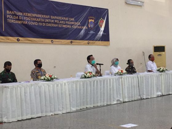 Pagi ini Jumat (24/4) bertempat di Gedung Wana Bhakti Yasa Yogyakarta, kemenparekraf RI salurkan bantuan kepada para pelaku wisata terdampak Covid-19 di Yogyakarta. Bantuan diserahkan secara simbolis oleh Deputi Bidang Produk Wisata dan Penyelenggaraan Kegiatan (Event) Kemenparekraf Rizki Handayani Mustafa kepada Gubernur DIY Sri Sultan Hamengkubuwana X.