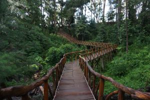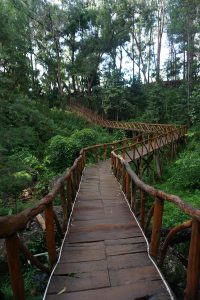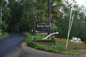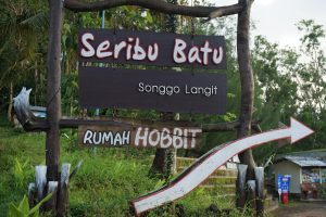Thousand stones is literally translated as sewu watu in Javanese. It also stands as acronym of “sejatine wong urip” (principle of the living) and “wajib tumindak utomo” (should do good deeds), while “songgo langit” means bracing the sky – defining human’s conscience to God. As a whole, the name bears a deep meaning, that human being should do good deeds for they hold the responsible before God. Javanese philosophy is full of symbols and moral values that passes through generations, depicted in the tourism spots herein and waiting to be revealed by the visitors. The area is divided into several attraction spots, including the Panggung Negeri Dongeng (Fairyland Stage), Jembatan Jomblo (Single Bridge), Pati Geni Cave, Kukusan House, Hobbit House, Lorong Gendong and Songgo Langit Peak.