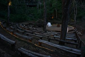 Panggung ini ditata sedemikian rupa, dibangun diatas aliran sungai kecil di antara tebing bebatuan dengan beberapa jenis tanaman menjadi perpaduan tampilan yang asri dan alami. Perpaduan bentang alam dan karya minimalis panggung pertunjukan berbentuk bulat sebagai tempat pertunjukan, studio alam dan berbagai atraksi lain seperti mendongeng, sendra tari, maupun tempat wedding outdor yang sangat diminati wisatawan. Keselarasan antara karya manusia dan kondisi alam sekitar memunculkan banyak cerita dengan segenap ide kreatif dari kalangan muda yang tergabung dalam organisasi taruna wisata. panggung negeri dongeng menjadi ajang menuangkan ide kreatif baik dari kalangan muda maupun tua untuk ekspresi karya mereka menjadi pelengkap daya tarik terutama dalam mengembangkan kebudayaan masyarakat setempat. Salah satu karya yang mendapatkan apresiasi dari berbagai kalangan termasuk dari deputi bidang pemasaran Kementerian Pariwisata yakni Sendratari Nitik Siti Wangi.