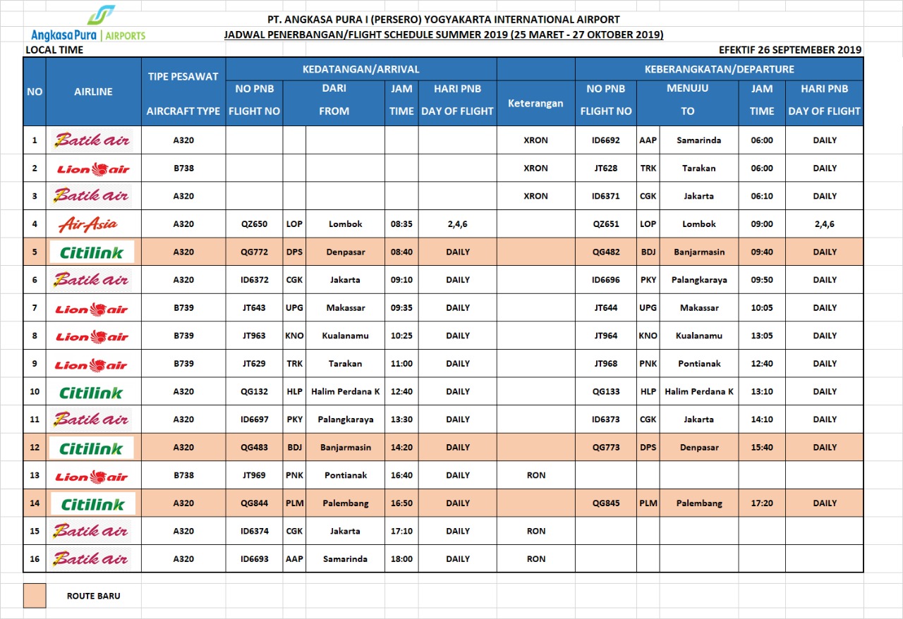 Berikut ini jadwal penerbangan dari dan ke Yogyakarta.