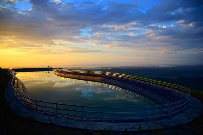 Warga menikmati keindahan Waduk Mini Kleco terletak di Dusun Ngesong, Desa Giripurwo, kecamatan Girimulyo, Kulonprogo, Yogyakarta , 6 Juni 2015 , Waduk mini ini yang menampung air hujan berfungsi untuk mengairi sawah dan kebun warga desa bila menjelang musim kemarau./Gholib
